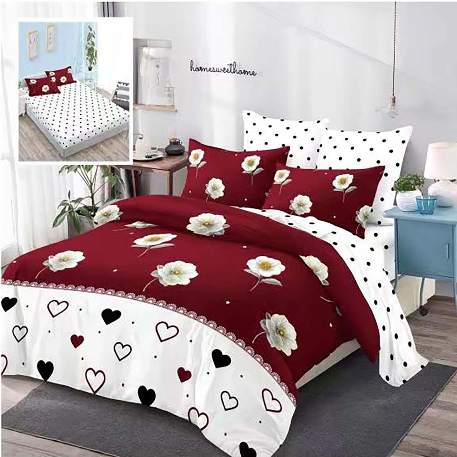 Extra ágynemű Extra 6 db, lepedő gumis matrachoz 140×200, 160×200 vagy 180×200, lepedő 200×230, 2 oldalpárna 50×70, 2 oldalpárna 70×70, gránát szívvel