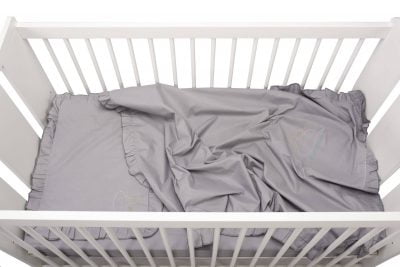 Kiságy ágyneműgarnitúra, pamut (lepedő 60 × 120, lepedő 80 × 110, első párna 35 × 50), hímzett, fodros, GRI